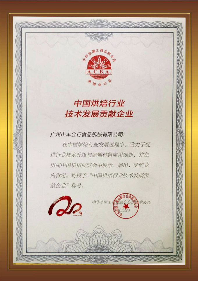 經(jīng)過二十余年的沉淀,【豐會(huì)行】本著對(duì)食品機(jī)械的不斷創(chuàng)新,對(duì)產(chǎn)品質(zhì)量的嚴(yán)格要求,對(duì)客戶的優(yōu)質(zhì)服務(wù)的經(jīng)營(yíng)理念,得到了《中華全國(guó)工商業(yè)聯(lián)合會(huì)烘焙業(yè)公會(huì)》的肯定,在本次展會(huì)中特授予【豐會(huì)行】為“中國(guó)烘焙行業(yè)技術(shù)發(fā)展貢獻(xiàn)企業(yè)”的榮譽(yù)。